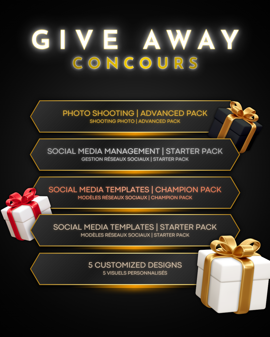 - Modèles réseaux sociaux – Pack Champion (collection au choix – valeur : 49,99 €)