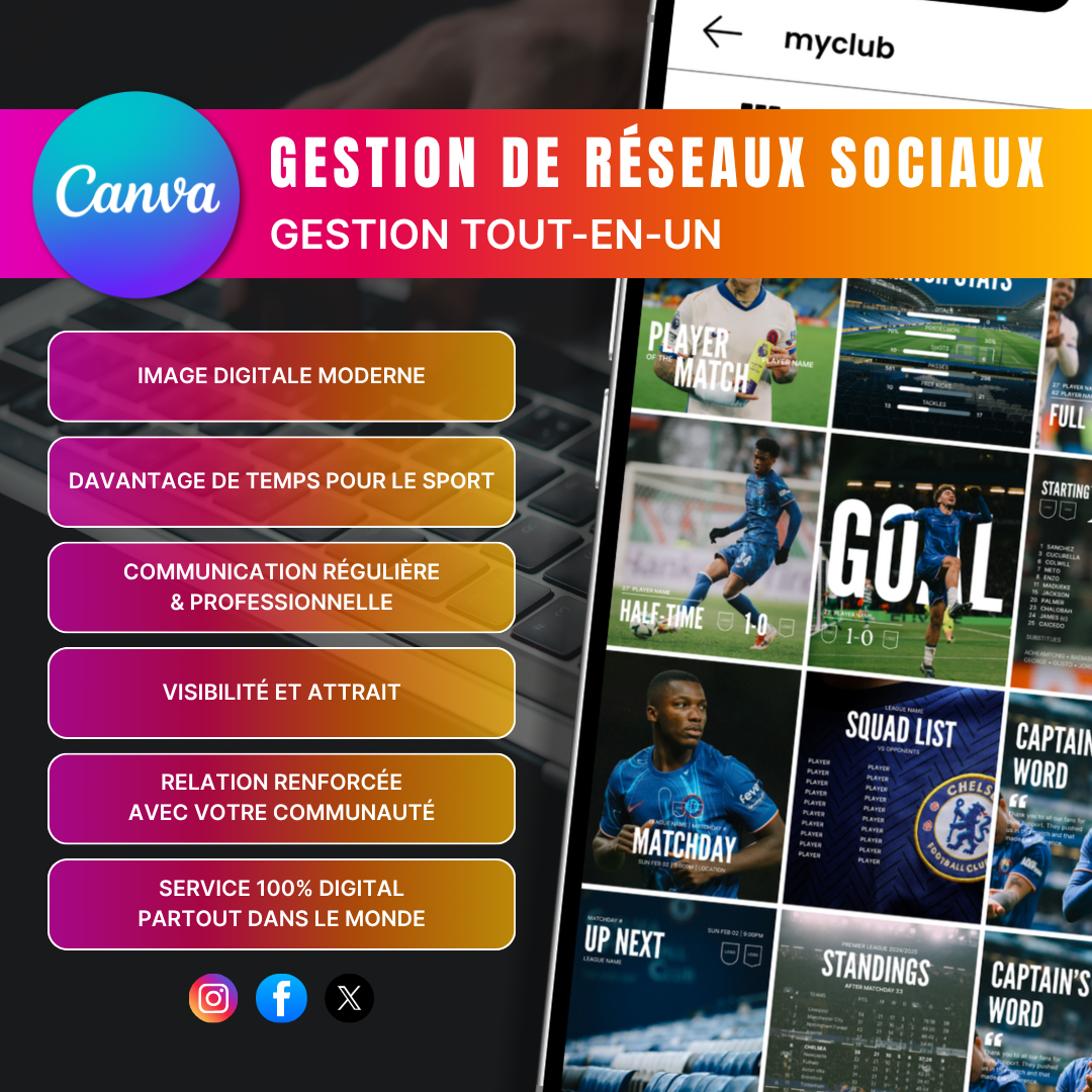 Nous créons, planifions et publions vos contenus : vous, vous jouez. Nous, on fait briller le club.