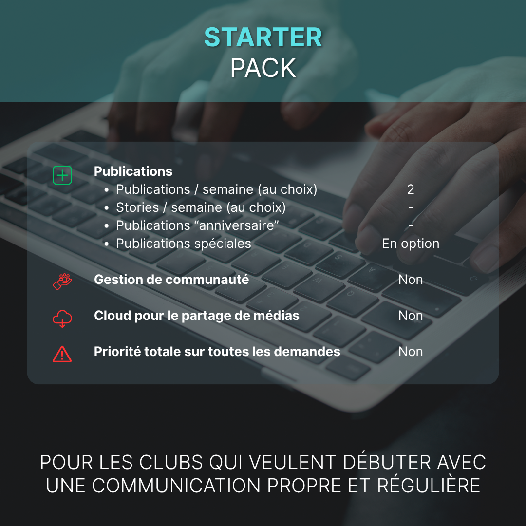 Pour les clubs qui veulent débuter avec une communication propre et régulière.