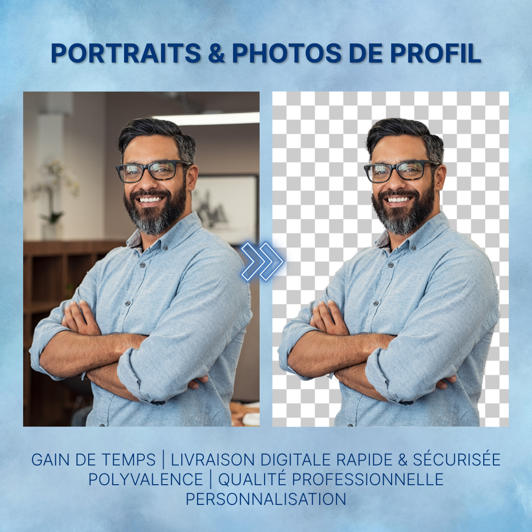 Idéal pour les réseaux sociaux ou le milieu professionnel (LinkedIn, CV, site web). Un portrait avec un fond propre et harmonieux met instantanément en valeur votre image et votre crédibilité.