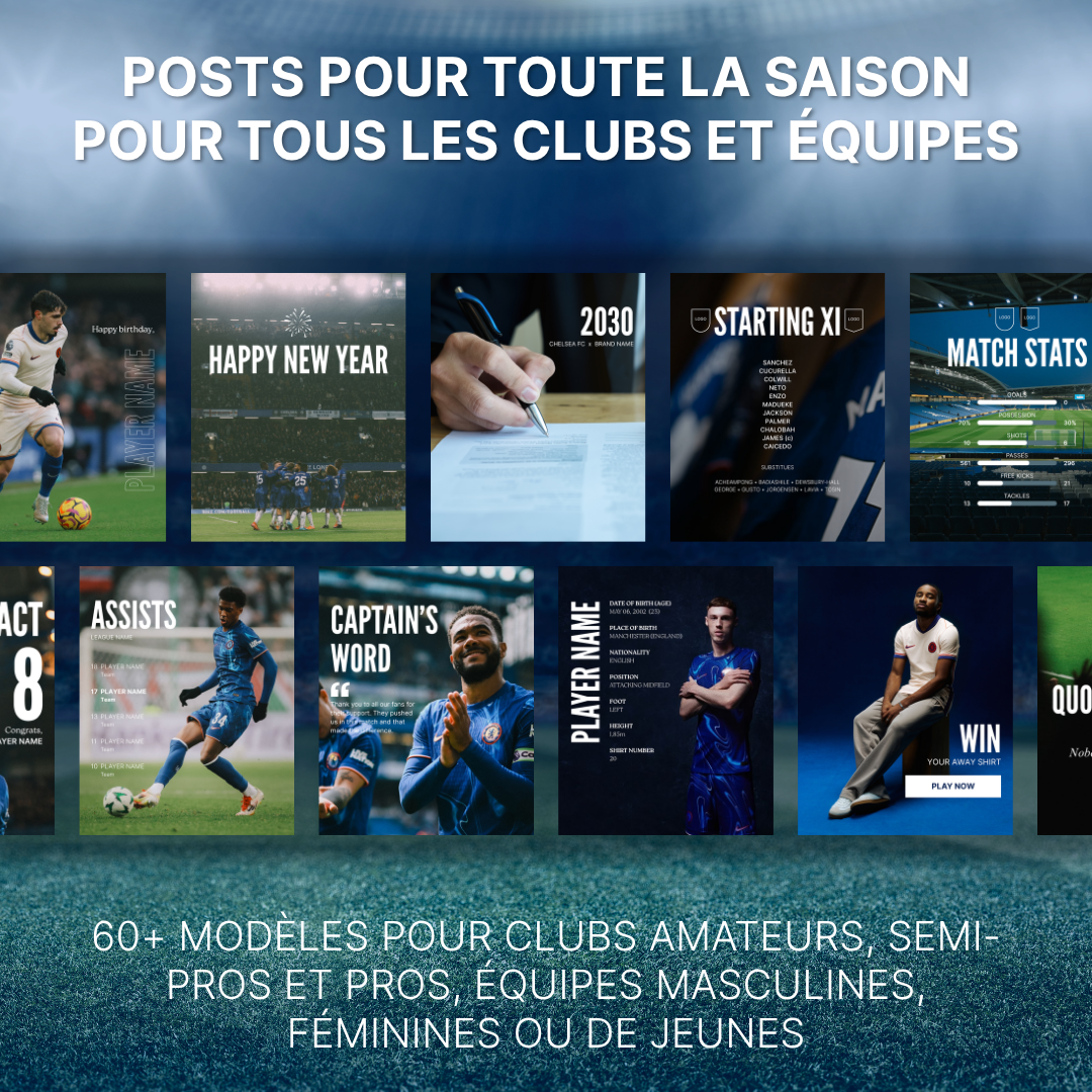 Des visuels professionnels, prêts à publier, pour améliorer la communication de ton club sans perdre de temps.